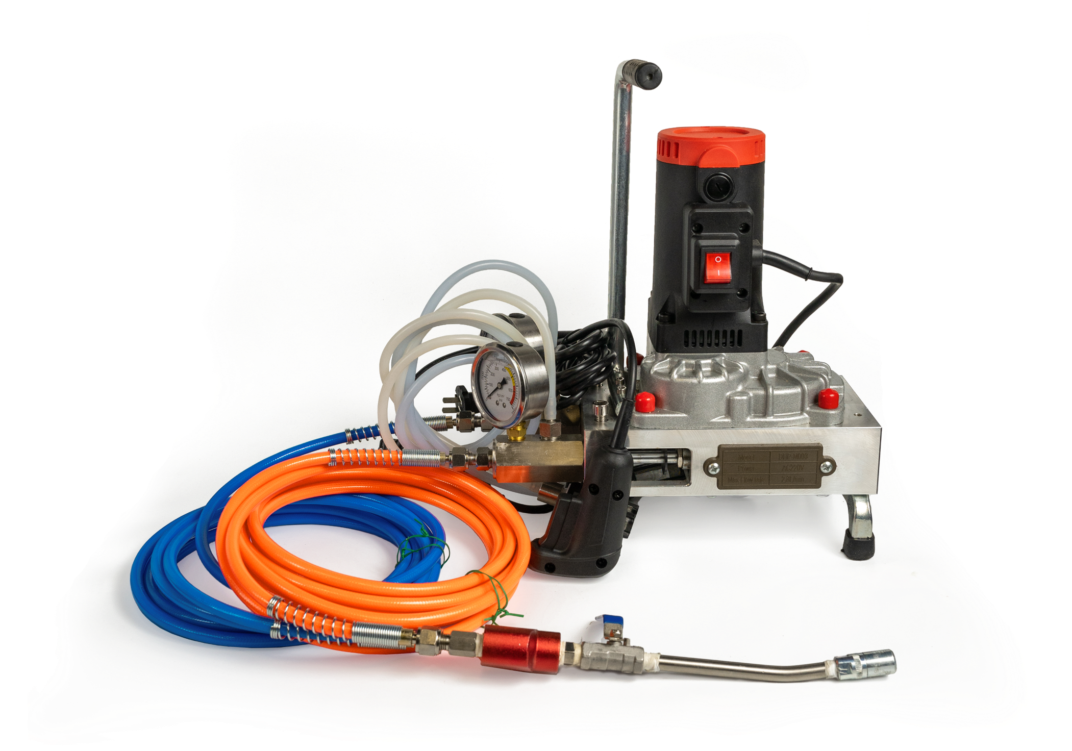 Поршневой электрический насос GK-18 предназначен для инъектирования низковязких акрилатных гелей в строительную конструкцию в процессе устройства инъекционной гидроизоляции и восстановления герметичности трещин и швов. Поршневая группа и все комплектующие, имеющие контакт c материалом, выполнены из металла, не подверженного коррозии. Забор материала осуществляется непосредственно из тары через всасывающие шланги. Смешивание компонентов происходит в насадке-смесителе, что позволяет использовать насос для инъектирования материалов с малым временем реакции.